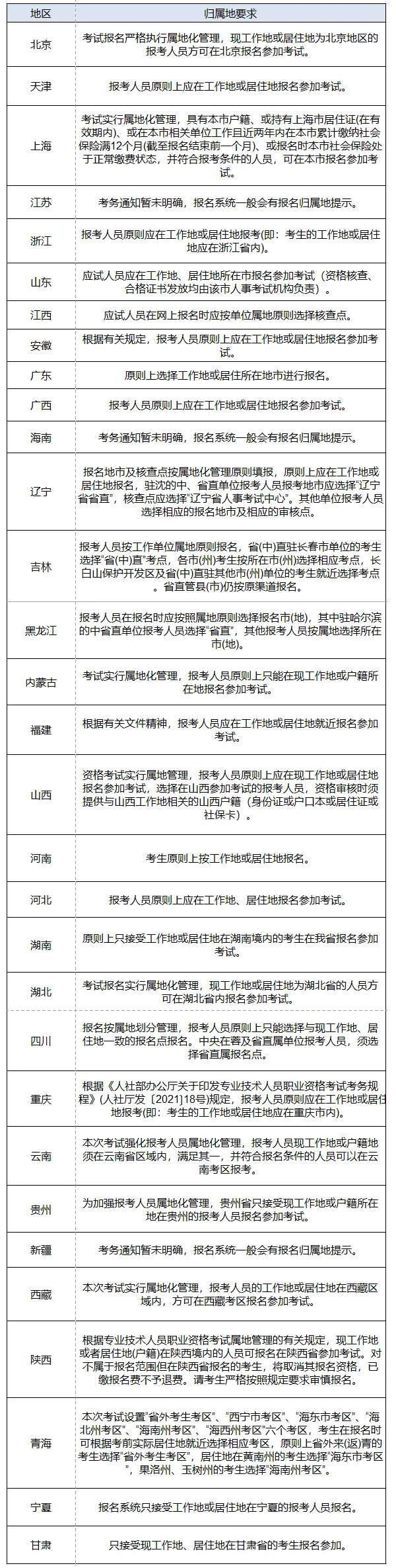除此之外,各省考务通知中也会发布报名归属地要求。有个别省份报考要求也会有所不同,考生还是以本省的考务通知要求为准。