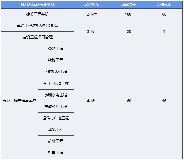 一级建造师考试共有四个科目,分别是《建设工程经济》《建设工程法规及相关知识》《建设工程项目管理》和《专业工程管理与实务》。其中,《建设工程经济》满分100分,合格标准为60分;《建设工程法规及相关知识》和《建设工程项目管理》满分均为130分,合格标准为78分;《专业工程管理与实务》满分160分,合格标准为96分。这样的划分既考虑了不同科目的难度和重要性,又确保了考生在各个方面的知识和能力都能达到行业要求。