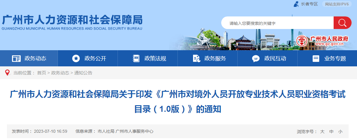 为深入贯彻落实《粤港澳大湾区发展规划纲要》,鼓励境外专业人才来穗就业创业,提供便捷职业资格考试服务,我局根据《国家职业资格目录(2021年版)》及相关政策文件,会同相关行业主管部门共同整理了《广州市对境外开放专业技术人员职业资格考试目录(1.0版)》(以下简称《考试目录》,共计41项),现予以印发。相关资格考试的报名条件、考务政策等按国家或省的有关规定执行,本《考试目录》可根据国家政策法规的调整而调整。