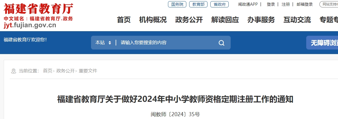 《福建省教育厅关于做好2024年中小学教师资格定期注册工作的通知》内容如下: