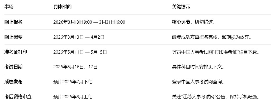 在开始报名前,请务必牢记以下核心时间表,建议收藏或设置提醒: