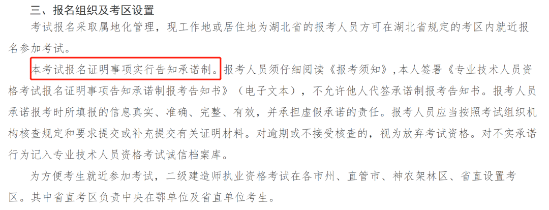 考试实行报名证明告知承诺制,人事考试部门和行业主管部门在事中事后进行监管,报考人员应该按照考试组织机构的相关要求,在规定期限内提交或补充提交相关材料。