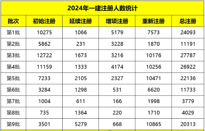截止目前,住建部共公布了9批一建注册人员名单,总共151983人通过注册。其中,初始注册人数为55775人,占比36.7%。具体如下: