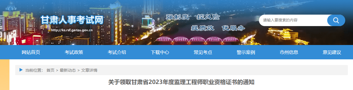 甘肃省2023年度监理工程师职业资格证书从即日起开始发放,证书发放开通“邮寄办、网上办”的不见面服务,建议考生申请邮寄办理。现将有关事项通知如下:
