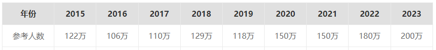 一建每年报考人数基本都是在100多万,且呈逐年递增的趋势。据内蒙古人事考试中心发布的公告可知,2023年全国一建考生已超200万,多地报考人数相比去年均有所增长,但有些地方参考率仍然比较低。详情如下: