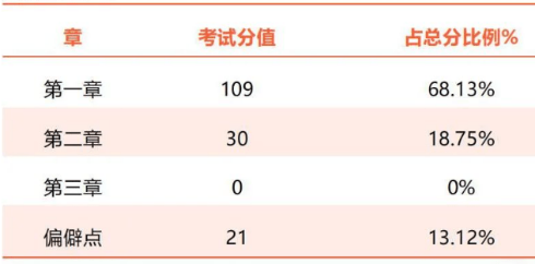 总体来看,基础考点占比约为80%,难点占比约为20%,整体考查第一章和第二章,分值分别为41分和106分。其中,难点主要集中在第二章。
