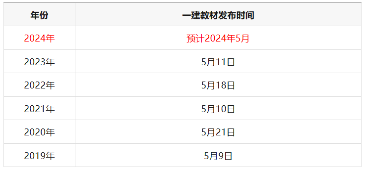 现在教材基本年年都在变,大体遵循五年一大变,三年一小变的规律。由于2023年一建教材变动不算太大,因此2024年教材会有大变的可能。