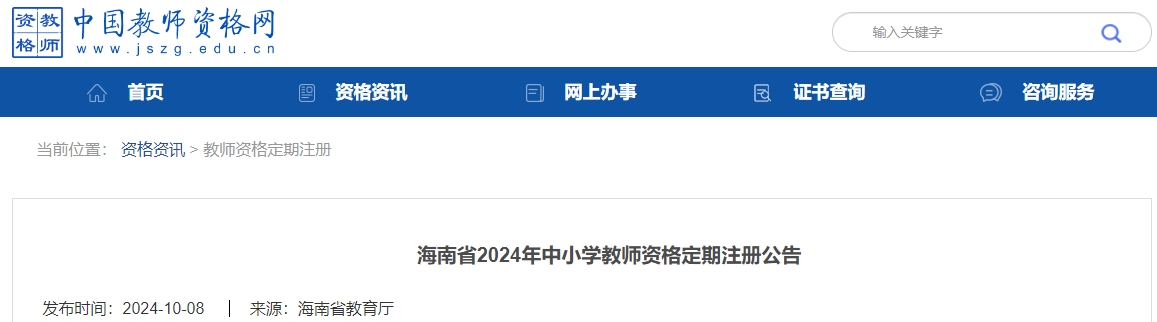 《海南省2024年中小学教师资格定期注册公告》内容如下: