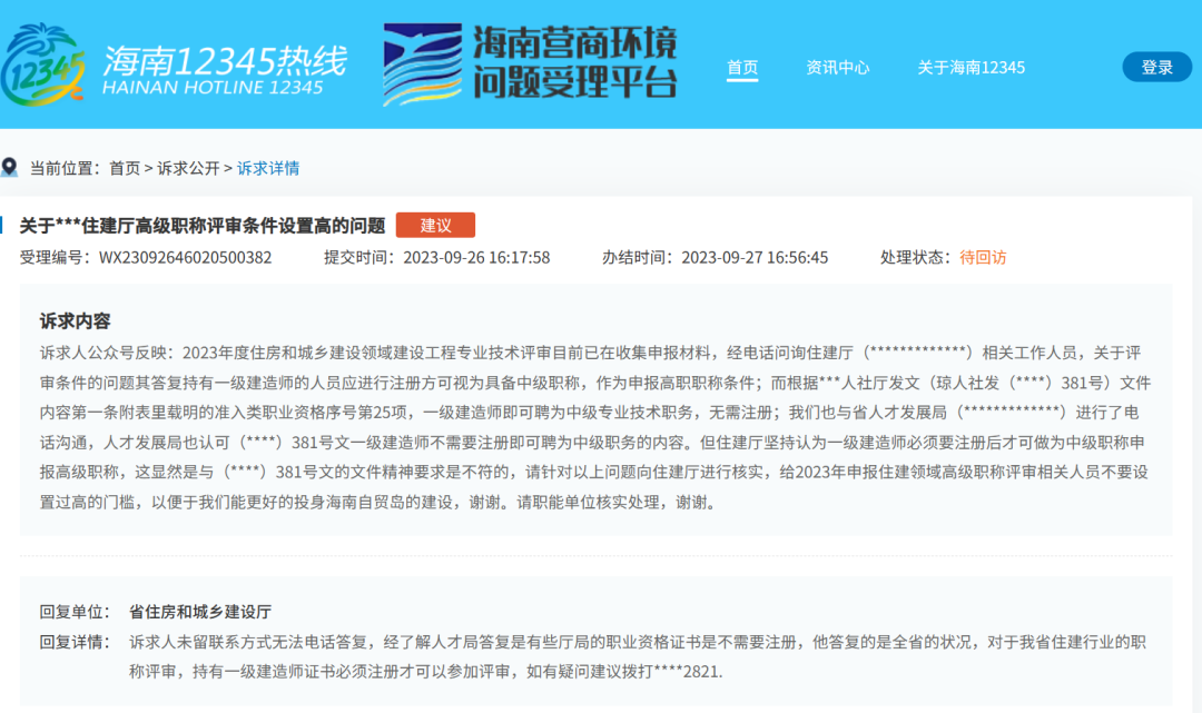 2.海南省住建厅回复: