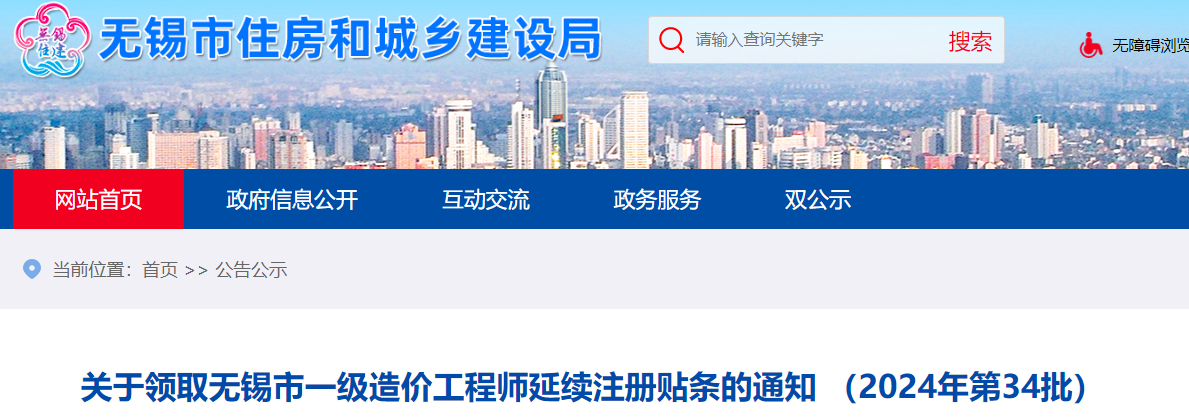 无锡市2024年第34批一级造价师延续注册贴条领取通知原文如下: