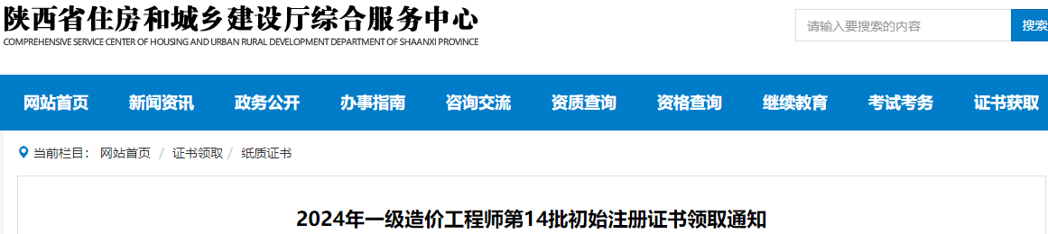 陕西省2024年第14批一级造价师初始注册证书领取通知原文如下: