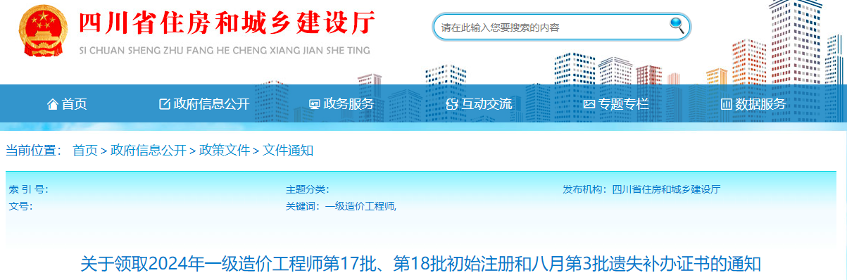 四川省2024年一级造价师第17批、第18批初始注册和八月第3批遗失补办证书领取通知原文如下:
