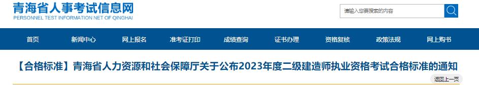 根据省住房和城乡建设厅《关于确定青海省2023年度二级建造师资格考试合格分数线的函》,为进一步促进我省建筑行业专业技术人才队伍发展,结合我省实际,经研究,确定2023年度二级建造师执业资格考试合格标准为:建设工程施工管理64分;建设工程法规及相关知识50分;专业工程管理与实务53分(不分专业)。