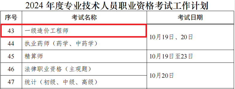2024年一级造价师考试时间