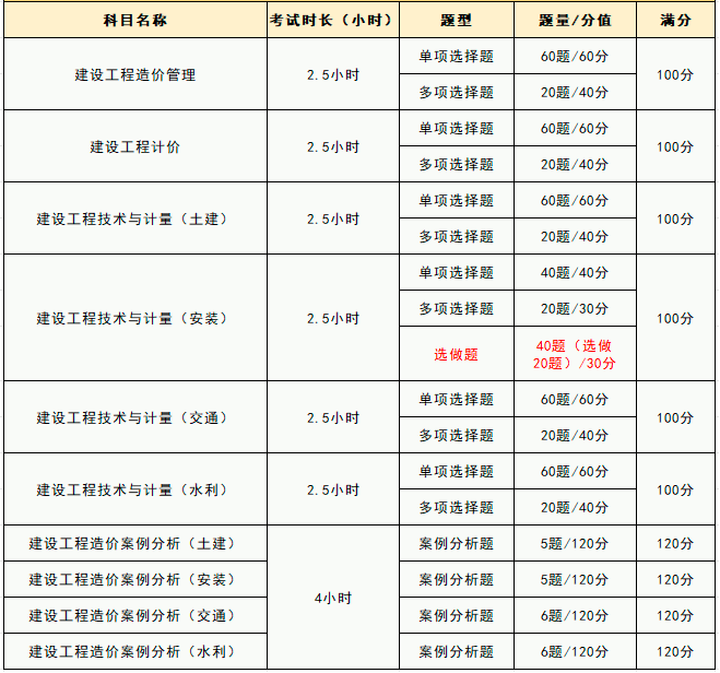 2024年一级造价师考试题型及分值