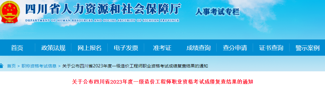 2024年3月7日,四川省人力资源和社会保障厅发布了《关于公布四川省2023年度一级造价工程师职业资格考试成绩复查结果的通知》,其中明确四川一级造价师成绩复核已结束,考生可进入四川省人力资源和社会保障厅官网查询复核结果。