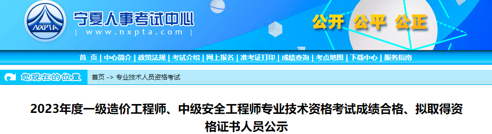 2024年1月2日,宁夏人事考试中心发布了《2023年度一级造价工程师、中级安全工程师专业技术资格考试成绩合格、拟取得资格证书人员公示》,其中对2023年一级造价师成绩合格人员信息进行公示,并明确部分合格人员需进行考后资格审核。