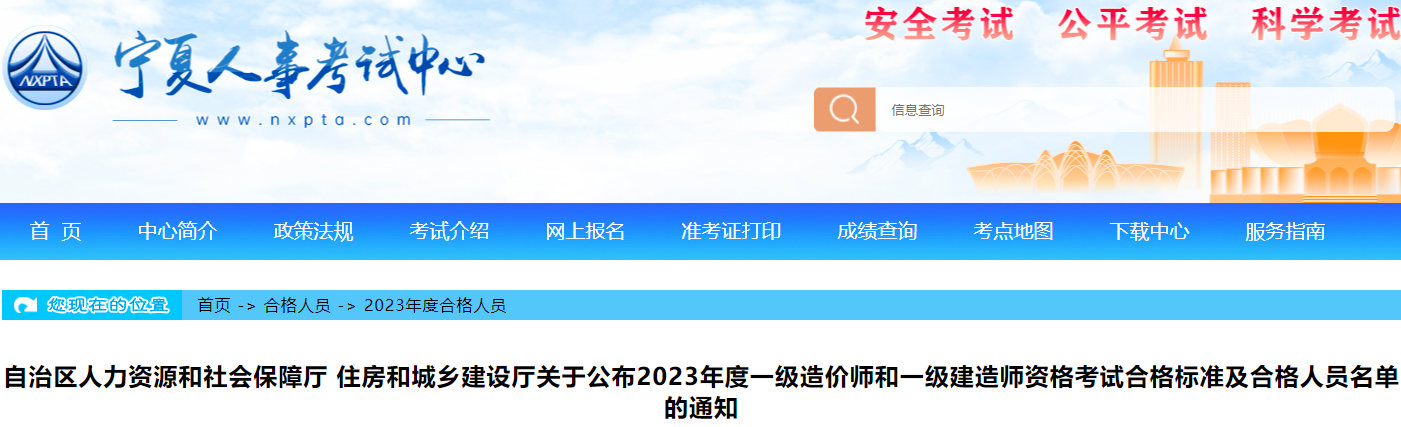 宁夏考区2023年度一级造价师合格标准及合格人员名单通知原文如下: