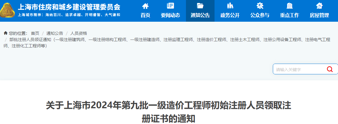 2024年6月7日,上海市住房和城乡建设管理委员会发布了《关于上海市2024年第九批一级造价工程师初始注册人员领取注册证书的通知》,其中明确该省第九批一级造价师初始注册证书已办结,申请人员需进行现场领证或邮寄领取。