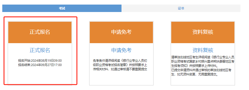2024年下半年初级银行职业资格考试在8月19日-9月27日期间报名。