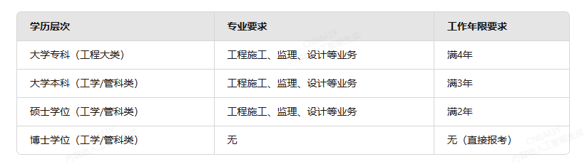 注:工作年限计算截止至考试当年年底,需提供单位盖章的工作证明,证明中需明确工作岗位与年限。