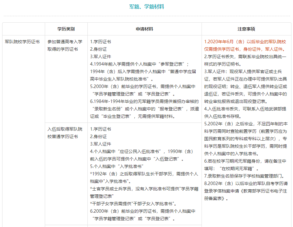 但是要切记!军校学历的考生须在一建报名开始前先在学信网进行学历认证。具体认证材料及要求如下图所示: