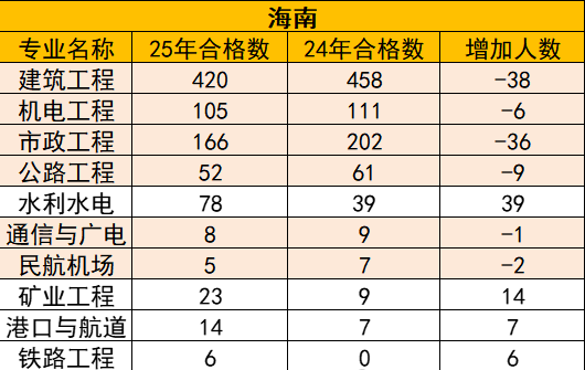 👉宁夏、海南、青海、云南各专业一建考试合格人数对比数据如下: