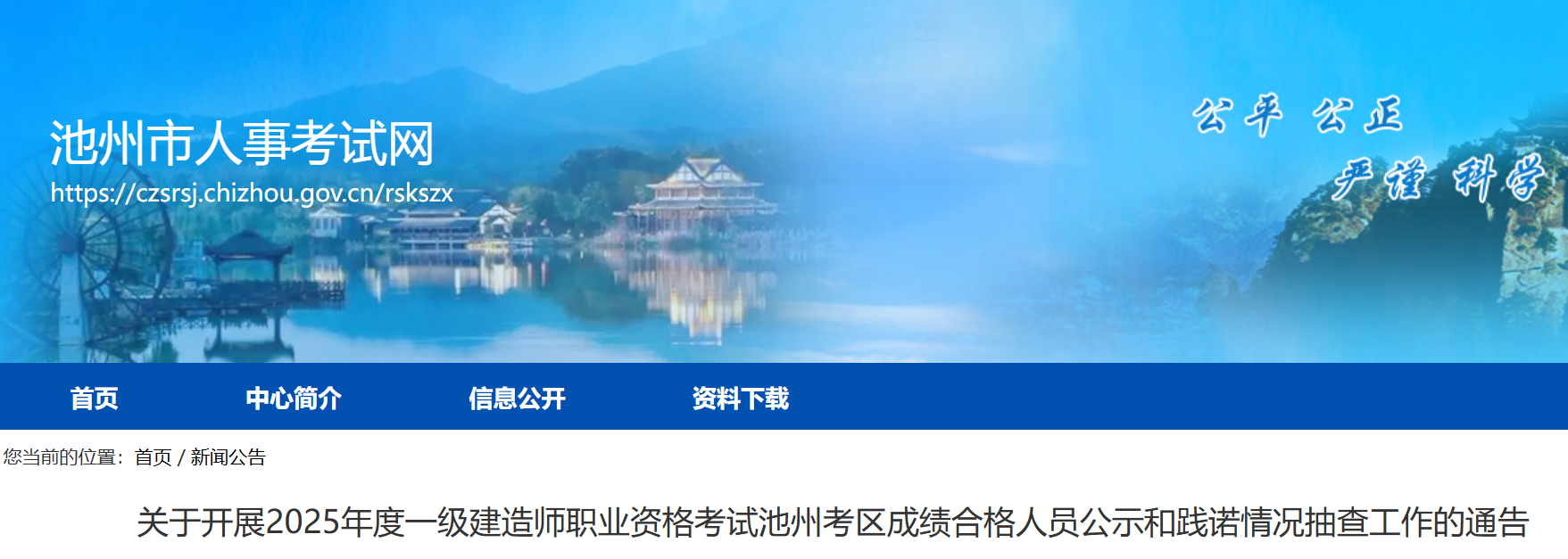 为切实加强事中事后监管,确保告知承诺制试点工作顺利推进,根据省人力资源社会保障厅《关于专业技术人员资格考试告知承诺制试点工作有关事宜的通知》(皖人社秘〔2020〕41号)以及资格考试报名证明事项告知承诺制有关要求,拟于近期开展2025年度一级建造师职业资格考试池州考区成绩合格人员公示和践诺情况抽查工作,现将有关情况通告如下。