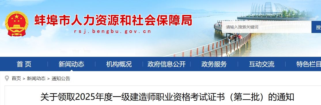 1月16日,蚌埠市人力资源和社会保障局发布《关于领取2025年度一级建造师职业资格考试证书(第二批)的通知》,明确安徽省蚌埠市2025年度一级建造师证书证书将采取统一邮寄方式进行送达,考试合格人员自行登录网站申请邮寄证书。
