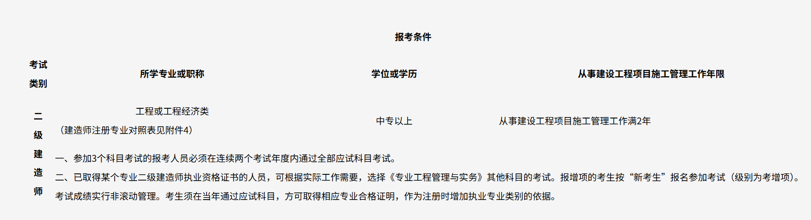 从事建设工程项目施工管理工作年限:从事建设工程项目施工管理工作满2年
