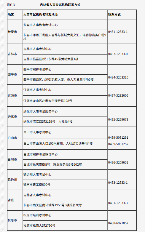 3.吉林省人事考试机构联系方式