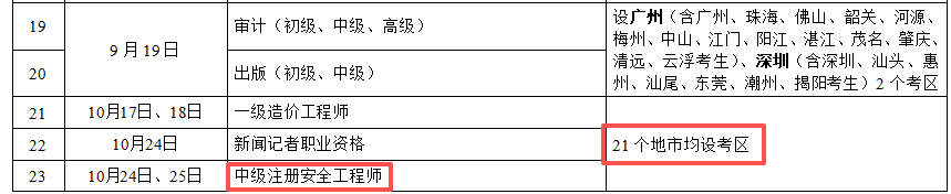 广东省初级及中级注册安全工程师考试全省21个地市均设考区,与一建、二建考试考区设置规模相当。