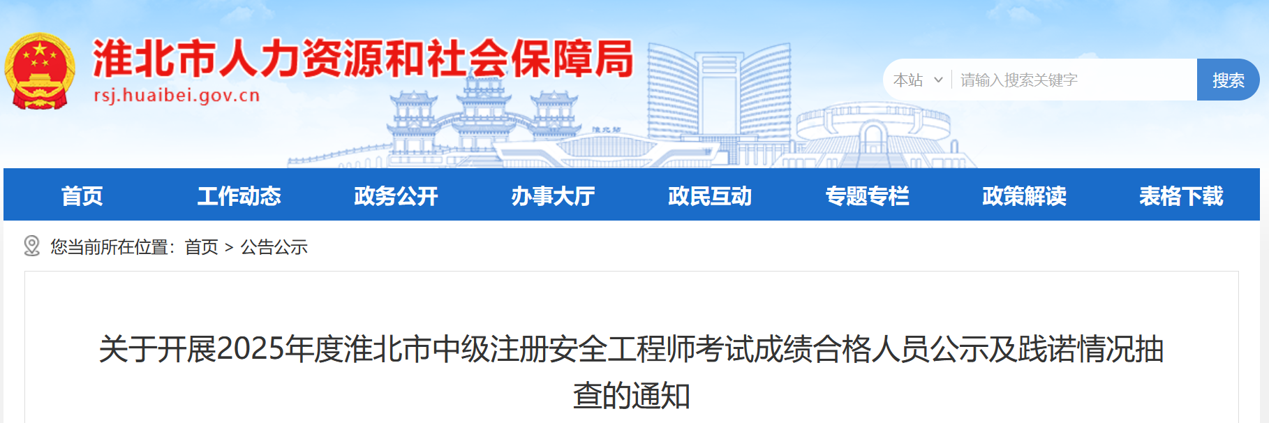 淮北市人力资源和社会保障局 淮北市应急管理局