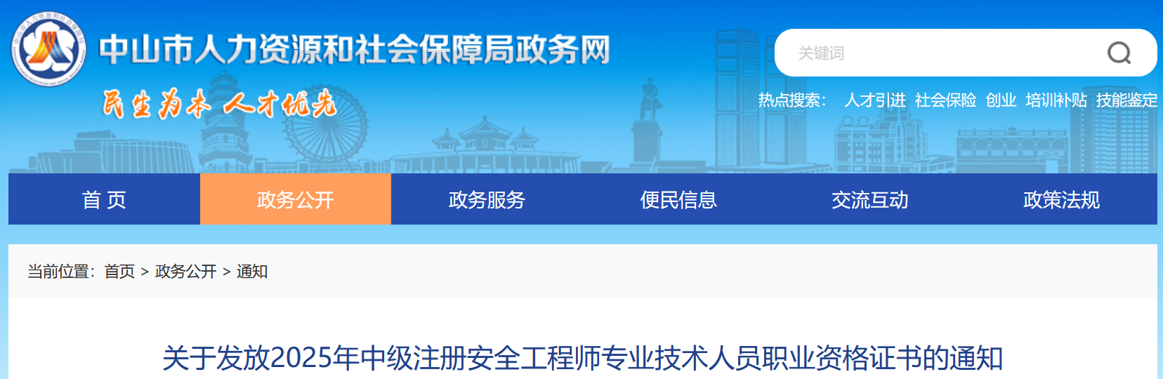 中山市人力资源和社会保障局