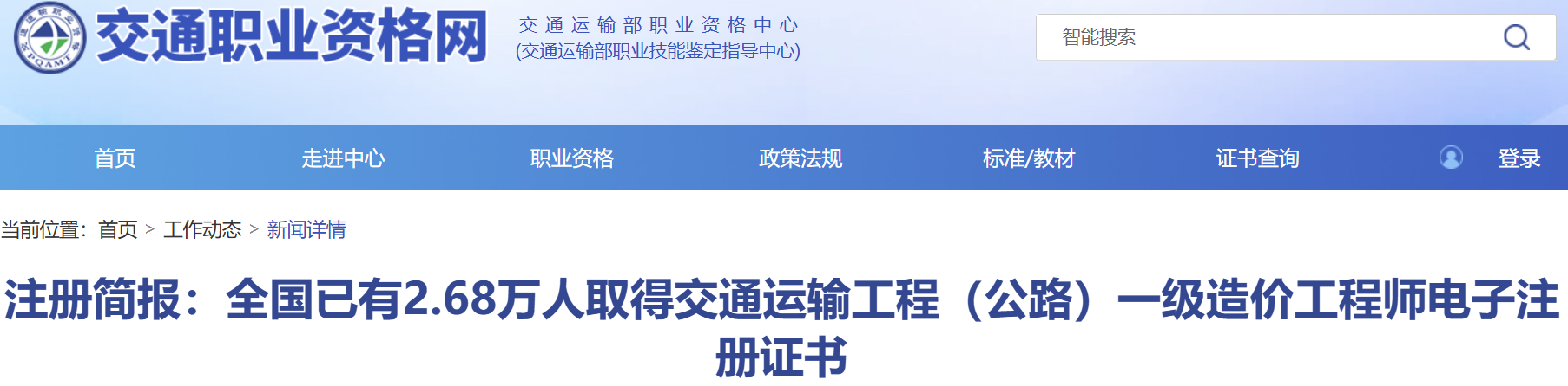 注册简报:全国已有2.68万人取得交通运输工程(公路)一级造价工程师电子注册证书