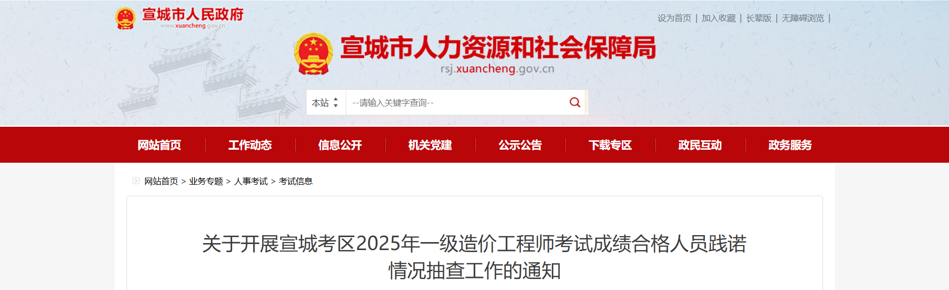 2025年12月19日,宣城市人社局通知开展当地一级造价工程师考试合格人员践诺抽查,被抽查考生需于12月19日-25日16:00前按要求上传相关材料至指定邮箱,未按时上传视为放弃,咨询电话0563-3036887、2719587。