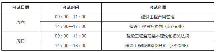 监理工程师考试四科开考两天,一天开考两科,各科考试时长有所不同。详情参考下图: