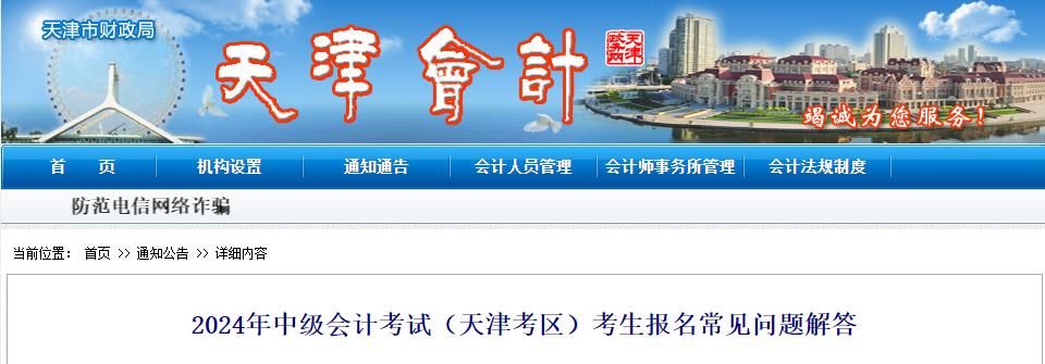 天津会计网发布《2024年中级会计考试(天津考区)考生报名常见问题解答》,对2024年天津中级会计报名的常见问题进行解答。