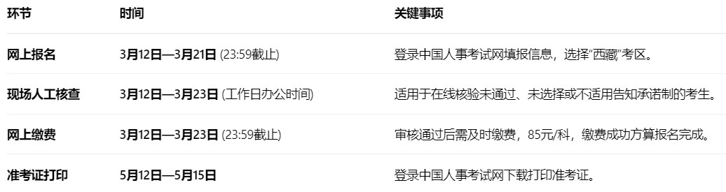 属地要求:本次考试实行属地化管理,报考人员的工作地或居住地必须在西藏自治区行政区域内,方可在西藏考区报名。