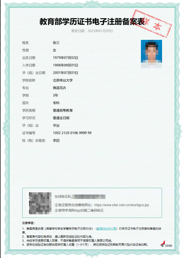教育部学历证书电子注册备案表: