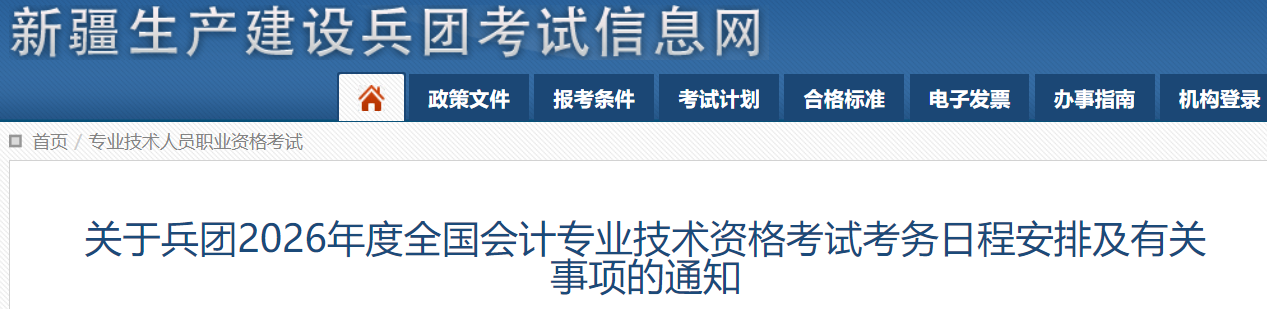 根据新疆生产建设兵团考试信息网发布的《关于兵团2026年度全国会计专业技术资格考试考务日程安排及有关事项的通知》可知2026年初级会计考试科目。