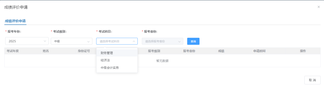 第四步:选择年份、级别、科目、省份,点击【查询】并完成预约。