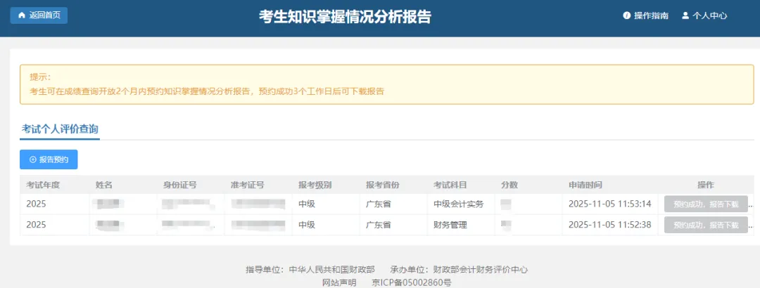 近日,全国会计人员统一服务平台推出了新功能————考生知识掌握情况分析报告,让你对各章节知识掌握情况一目了然。无论今年成绩是过了还是没过,都可以申请看看自己的不足点在哪。特别是今年有部分科目没通过的同学,建议去下载这份官方发布的报告,找出问题!