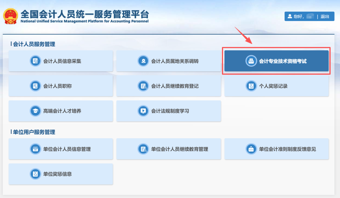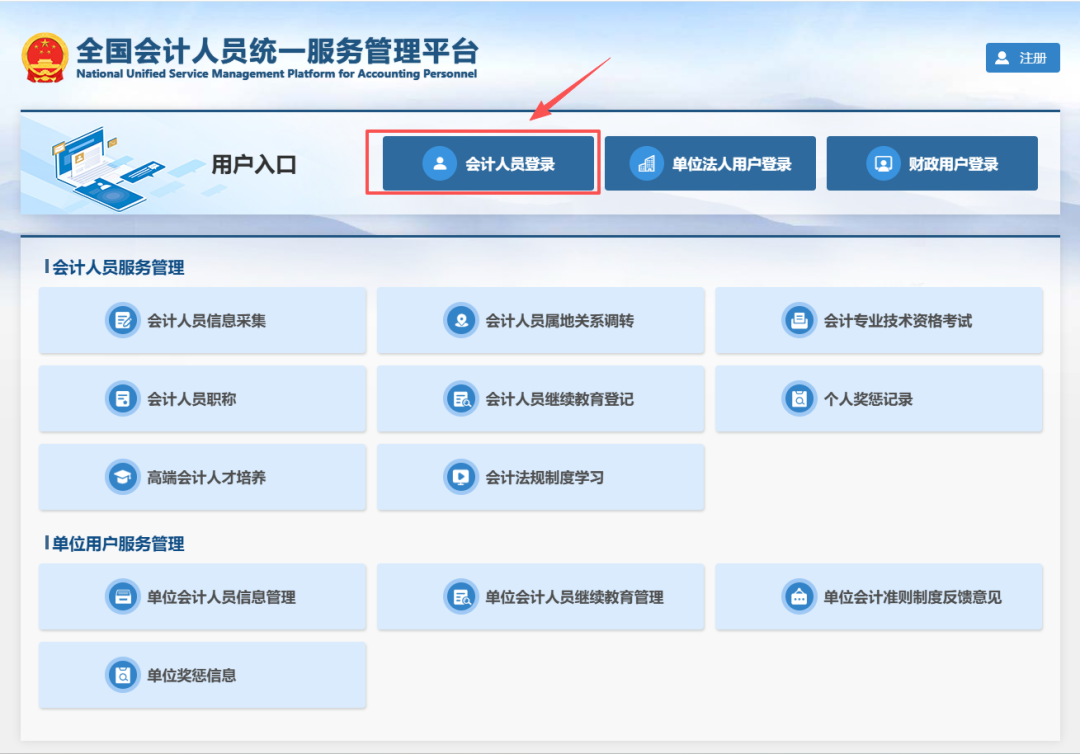 第一步:进入【全国会计人员统一服务管理平台】(网址:https://ausm.mof.gov.cn/index/),登录个人账号。