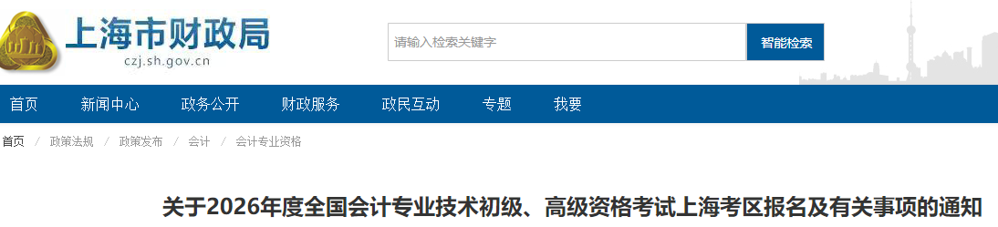 (1)2026年6月26日,在全国会计人员统一服务管理平台和“上海市财政局”网站公布初级会计资格考试成绩。
