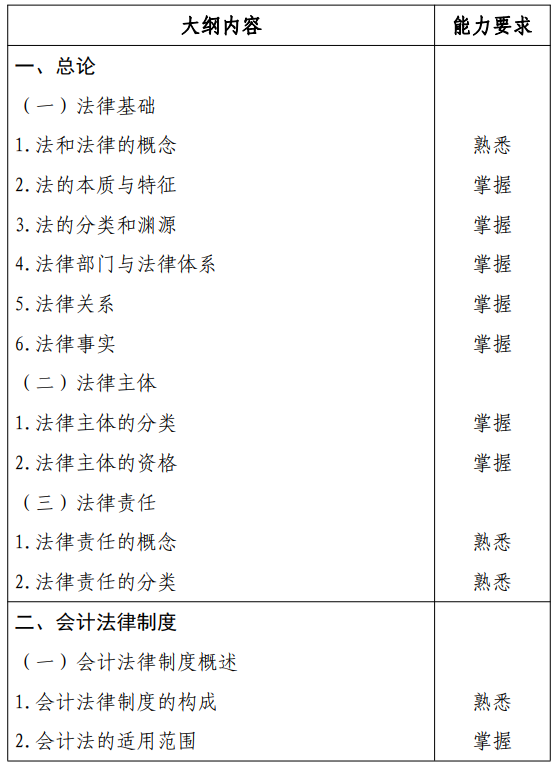 能力要求是对应试人员专业知识掌握程度的具体要求,分为掌握、熟悉、了解3个等级要求。