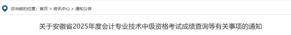 关于安徽省2025年度会计专业技术中级资格考试成绩查询等有关事项的通知