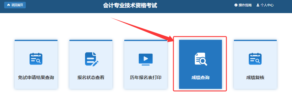 第一步:打开“全国会计人员统一服务管理平台https://ausm.mof.gov.cn/”,点击“会计专业技术资格考试”或考试服务“成绩查询”