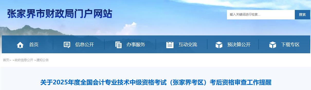 关于2025年度全国会计专业技术中级资格考试(张家界考区)考后资格审查工作提醒