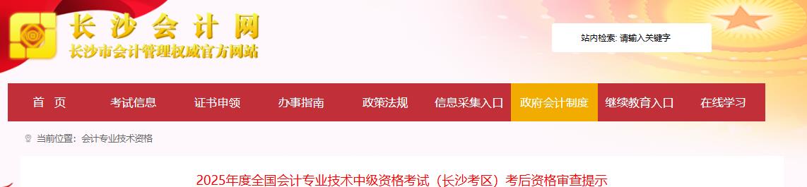 2025年度全国会计专业技术中级资格考试(长沙考区)考后资格审查提示